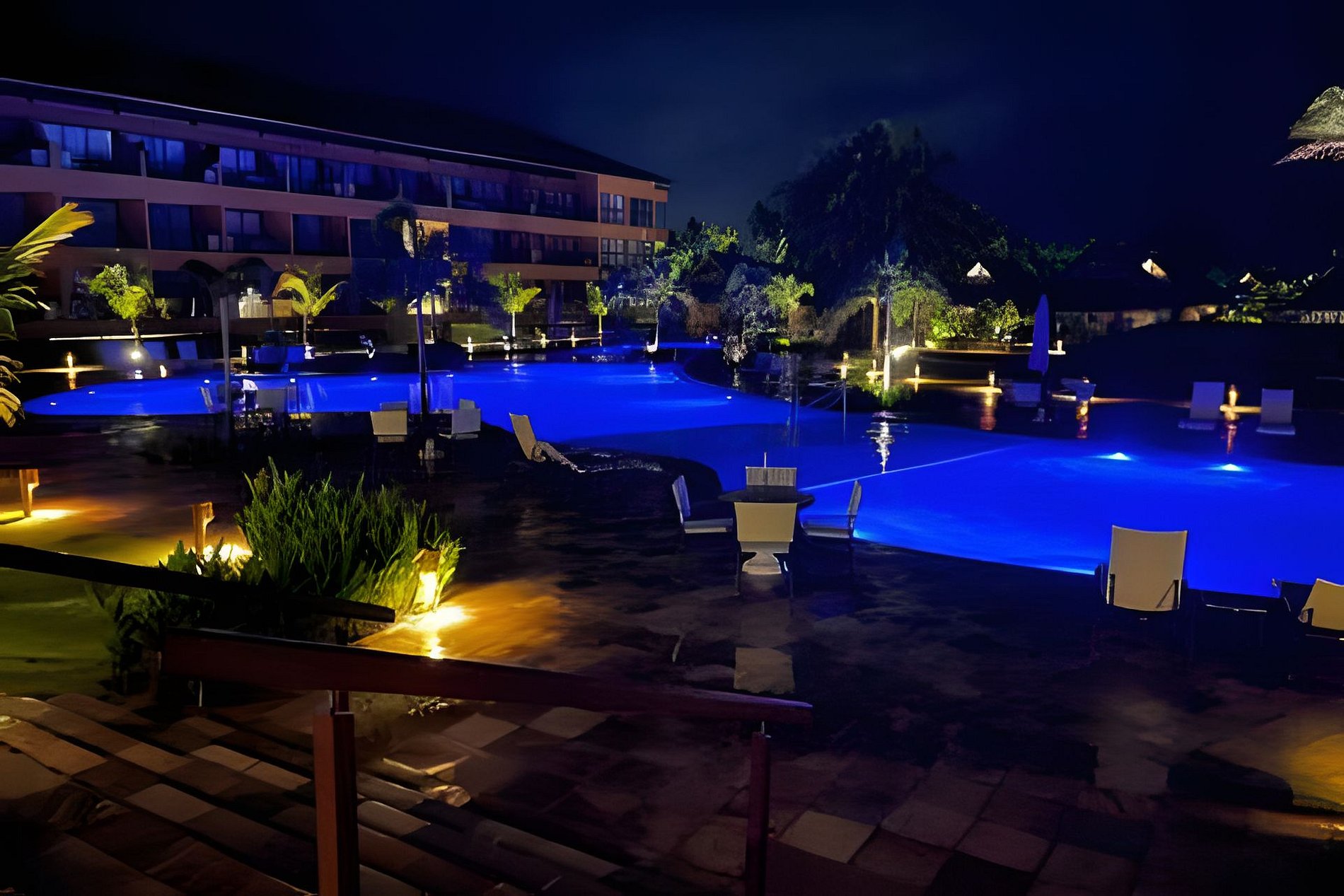 Uma das praias mais bonitas do Brasil, o Resort fica pé na areia com piscina, restaurante, quadras de esporte, academia e estacionamento incluso.