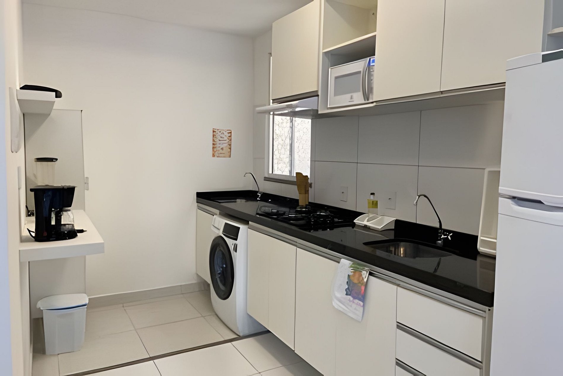 Apartamento novo e funcional com 2 quartos, banheiro com ducha quente, cozinha completa com todos os utensílios e eletrodomésticos. Sala de estar com sofá e TV Smart. Mesa de jantar com 4 cadeiras e espaço de trabalho no quarto principal. Wi- fi gratuito. Self check in/out.
